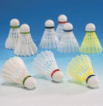 Kopf aus Alu und Schaft aus Stahl, isometrisch, 98 g schwer, mit 9 kg besaitet, Rally 21 Saite, double finish design