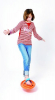 Ovale, orangefarbene Grundform mit Spurrille, rutschfester, strukturierter Oberfläche und Halbkugel-Wölbung auf der Unterseite. 47,5 x 27,5 x 7,5 cm (L x B x H). Gewicht 710 g. Stabiler, hochwertiger Kunststoff, bis 120 kg belastbar, mit breitem Klettverschluss für alle Fuß- und Schuhgrößen, inkl. 5 Gummikugeln. Barfuß oder mit rutschfesten Schuhen zu benutzen, für drinnen und draußen. Für Kinder ab 4 Jahren, Jugendliche und Erwachsene, inkl. Anleitung