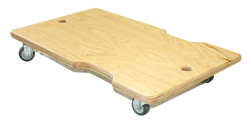 durch die Griffnischen sind die Hände besonders geschützt, mit abgerundeten Kanten, Löchern für Zugseile vorn und hinten und soliden Rädern, Größe 60 x 35 cm, belastbar bis ca. 180 kg