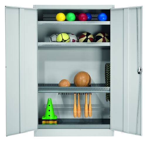Alle Sportgeräte übersichtlich, sicher und fest an ihrem Platz - dieser Sportgeräteschrank bringt Ordnung in die Sporthallen von Vereinen, Schulen, Städten und Gemeinden. Maßgeschneidert in zeitlosem Design, robuster Bauart und funktioneller Einteilung